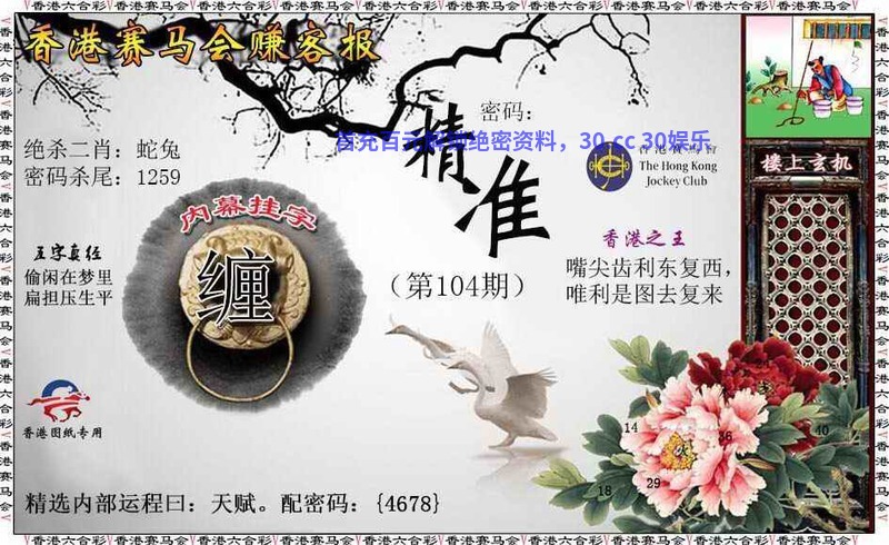 284期:白姐特段/简单发财诗/马会欲钱料/七娘一句中/开藏特图料 |